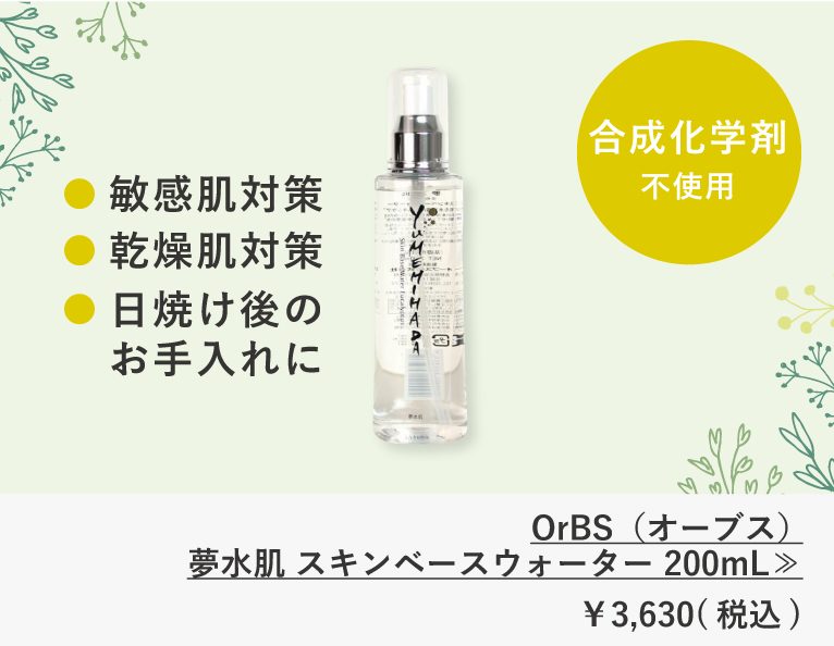 『オーブス』のスキンケアアイテムは、防腐剤などの添加物を一切使用していないので、ゆらぐ季節の強い味方です。日焼け後のお手入れにもおすすめで、これからの季節に1本持っておきたいアイテムです。