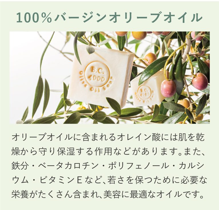 「100%バージンオリーブオイル石鹸」には、合成界面活性剤を使用していないため、洗顔ネットを使うことで上質なきめ細かい泡で洗えます。