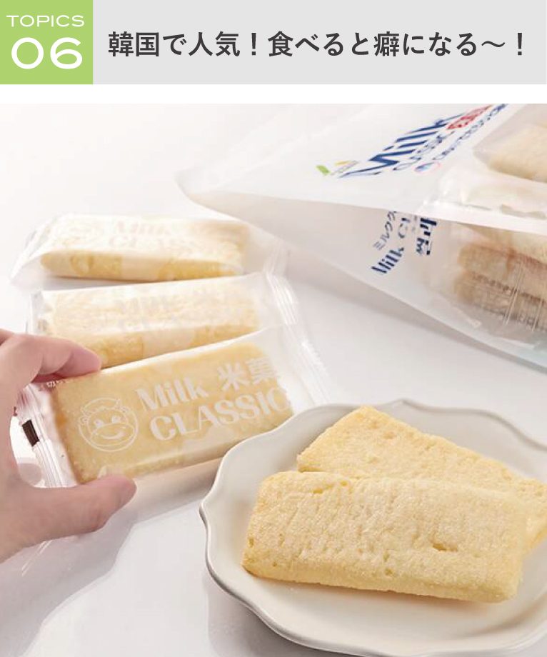 韓国で話題のお菓子「Milk CLASSIC(ミルククラシック)」。ふわっとしたミルクせんべいのような味で食感はサックサク!「少し味が足りない?」と思うくらいほんのりミルク味なのですが、それがなんだか癖になりまた1つ食べてしまい…と食べる手が止まらなくなります。