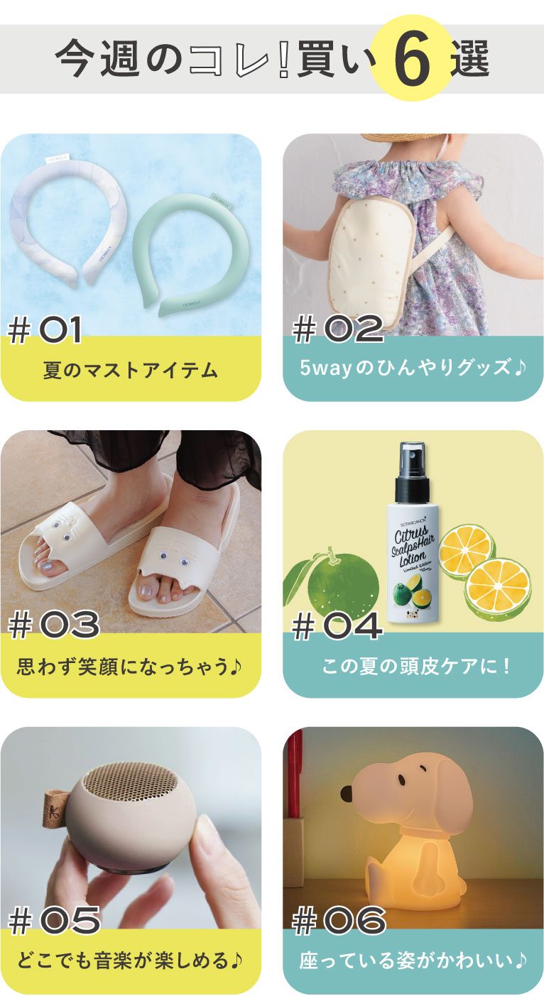 手軽に涼しくなれる「アイスリング」や子育てシーンに合わせて使い分けできる「ひんやりICEポーチ」のほか、お出かけやピクニックのお供にぴったりなネコモチーフのサンダルやミニスピーカーなど、夏気分を上げてくれるアイテムが揃っています◎