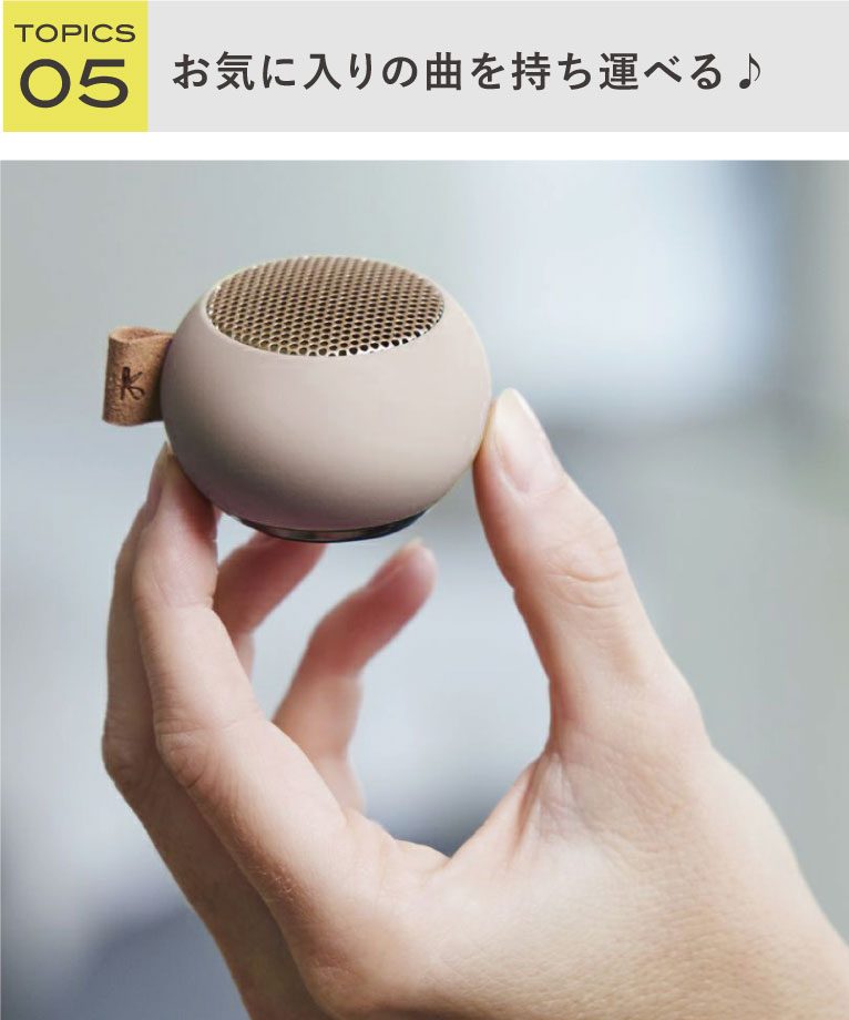 持ち運びが簡単で、フックにかけたり、ポケットに入れたり、外出や旅行にも最適なbluetoothスピーカー。2台用意してスピーカーをペアリングすれば、より迫力あるサウンドに!丸みを帯びたフォルムとスタイリッシュなデザインは、インテリアの1つとしても楽しめます。