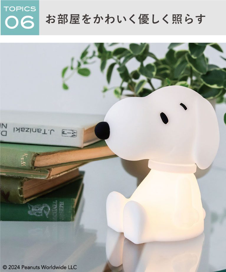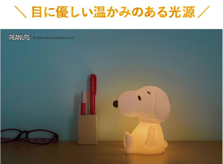 いつでも側に置きたくなる、手のひらサイズのスヌーピーのミニライト。優しく温かみのある光で照らしてくれます。触り心地の良い、柔らかいシリコン製なので子ども部屋にもぴったり◎プレゼントにもおすすめです。