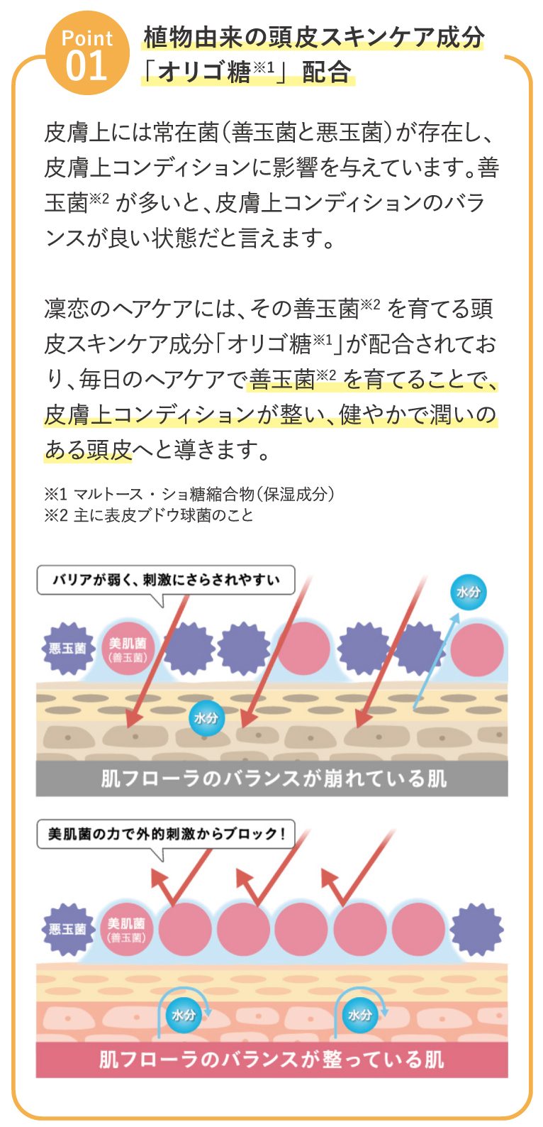 肌に美肌菌がいるように、頭皮にも善玉菌が存在します。紫外線や熱によるダメージを受けた頭皮を優しくケアする凛恋の薬用シリーズが頭皮悩みの強い味方に!