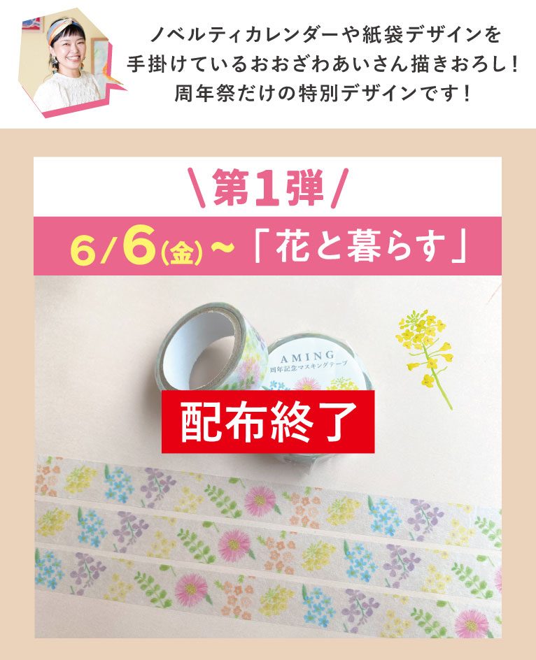 【※この記事は過去の記事です】 【周年祭】毎週デザインが変わる!アミングオリジナルマスキングテープをプレゼント♪