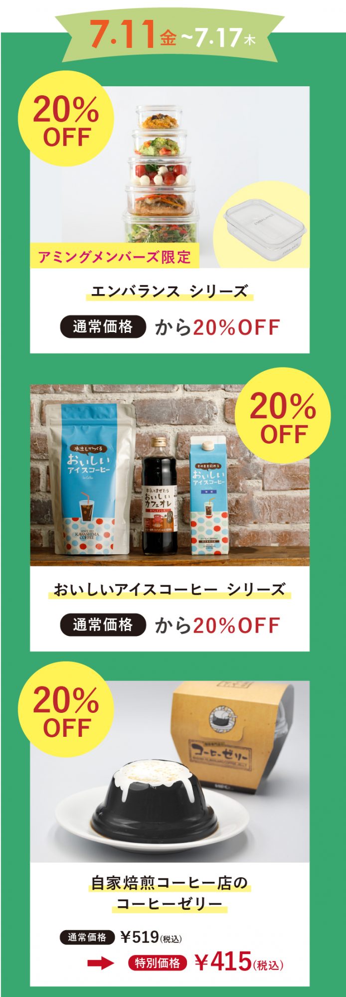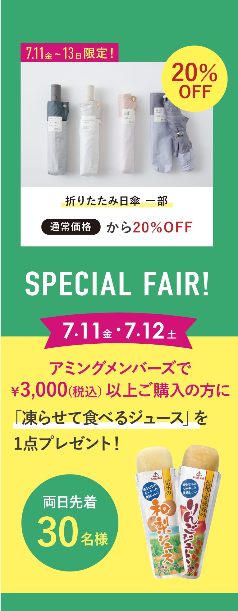 夏をもっと快適に、楽しく過ごすための暮らしに役立つアイテムが今だけの特別価格で登場!毎週変わるセールアイテムや期間限定のフェアをお楽しみください♪お得がいっぱいのアミングへぜひお越しください!