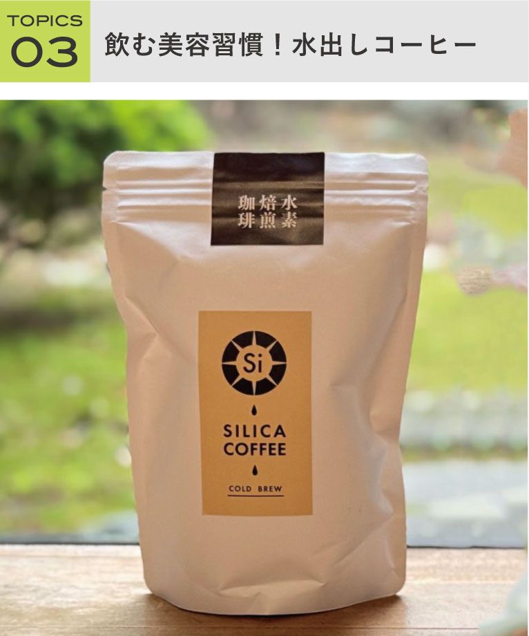 「シリカコーヒー」にはシリカやミネラル、食物繊維が豊富に含まれていて、内側からキレイを目指せます♪