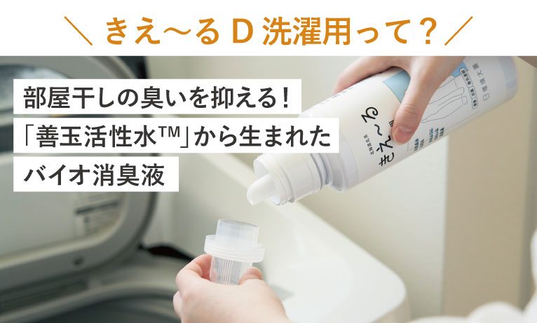 洗剤だけでは取れない繊維製品の奥にしみついた臭いを消臭・抗菌。部屋干しの臭いを抑えて洗濯槽のカビ予防にも◎
