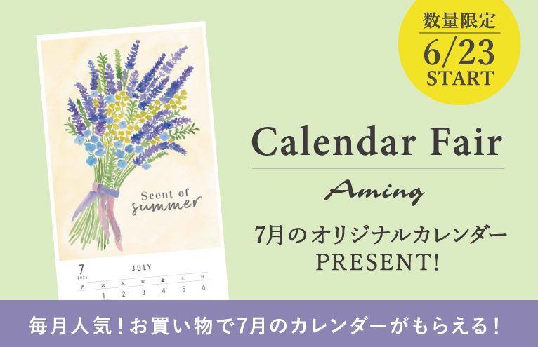 アミングでお買い物をしていただいた方に先着で「7月のオリジナルカレンダー」をプレゼント!