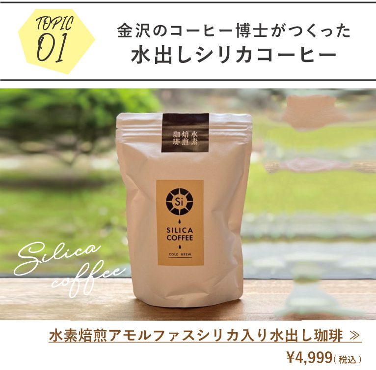 “コーヒー博士”と呼ばれるほどのコーヒー愛好家・廣瀬博士は「毎日飲むコーヒーだからこそ、体に優しい成分を自然に、無理なく摂り入れたい」という思いから、このシリカをコーヒーに加えることを決めたのです。こうして、体に寄り添うコーヒーが誕生しました。