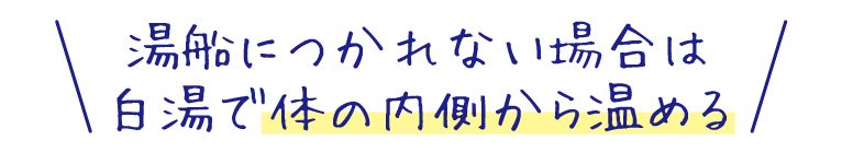 まずは湯船に浸かって、一日の疲れを労わってあげるのがおすすめですが、どうしても無理!という時は、白湯を飲んで体を温めてあげるのもおすすめです。