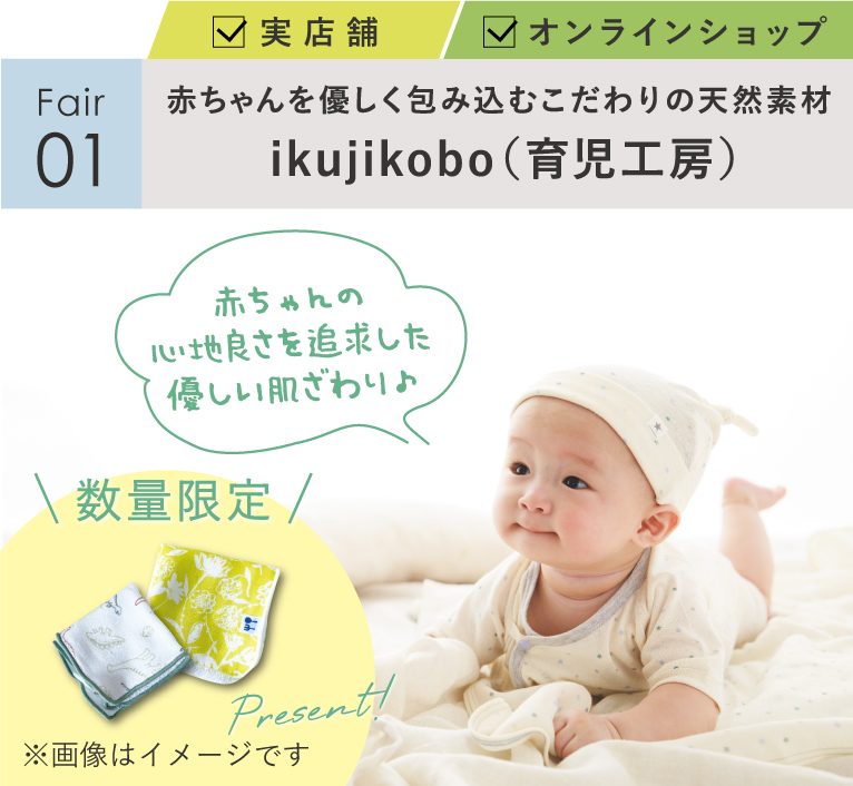 「ikujikobo(育児工房)」の肌着は、赤ちゃんの心地良さを追求した、優しい肌ざわりが特徴です。