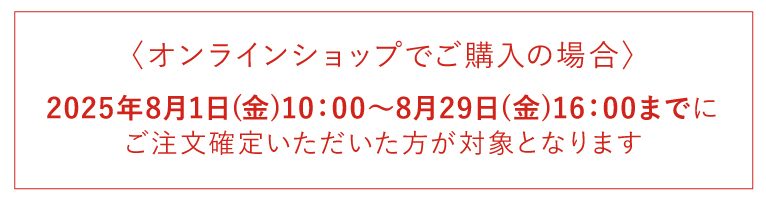 2025年8月1日(金)10:00~8月29日(金)16:00までにご注文確定いただいた方が対象