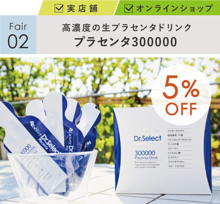 8月は「プラセンタ300000スマートパックが5%OFF!積極的にキレイを目指したい方や、ここ一番というときの集中ケアに。