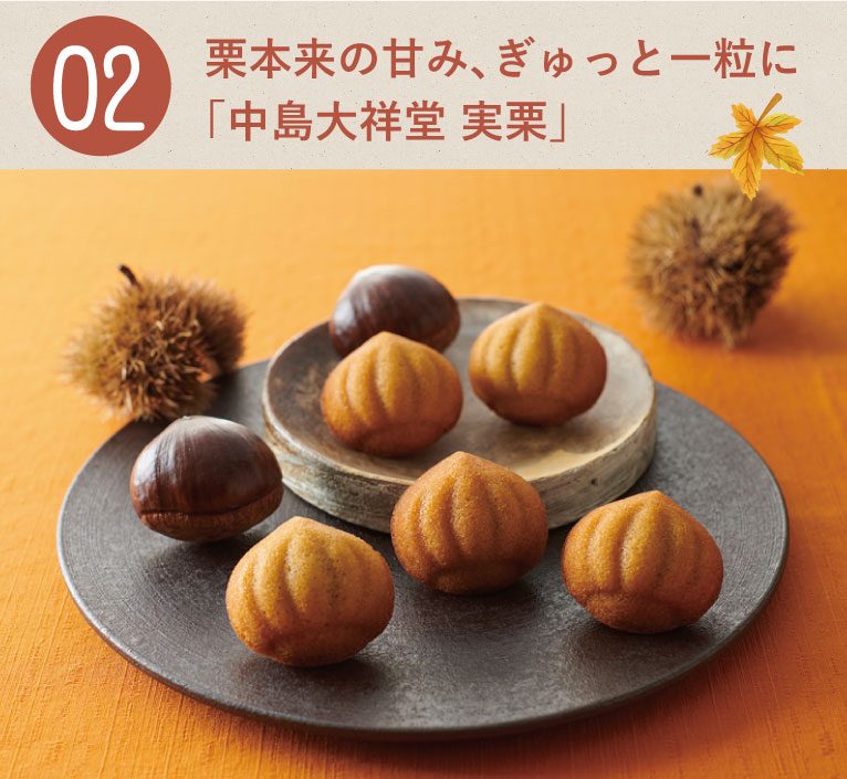 「実栗(みくり)」は甘くまろやかな味わいの和栗ペーストを練り込んだフィナンシェ生地に芳ばしい自家製のキャラメルを閉じ込めて、可愛らしい栗のフォルムに焼き上げました。