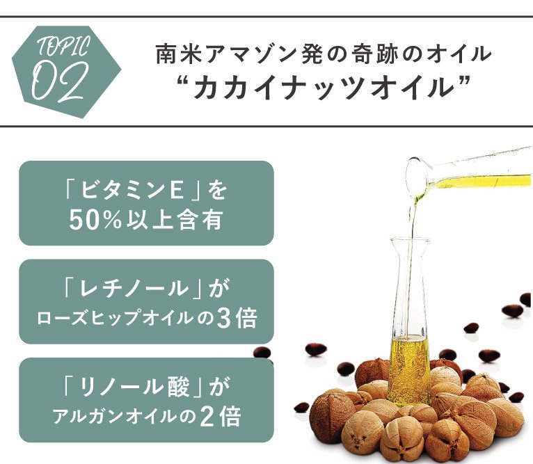 奇跡のオイルとも呼ばれる「オーガニック認証 カカイナッツオイル」が配合されています。