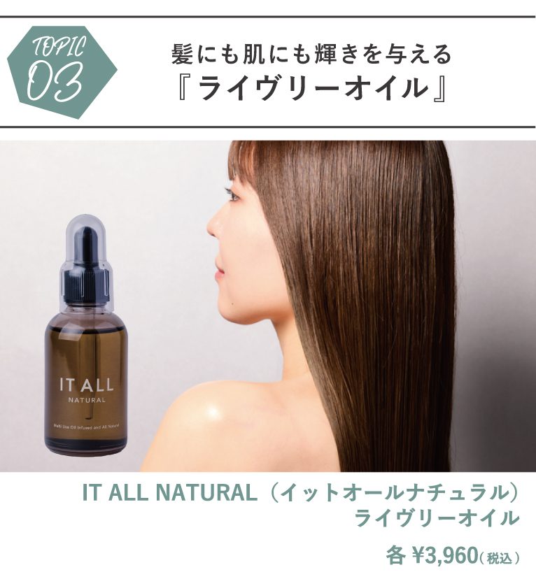 【オイル】髪にも肌にも輝きを与える『ライヴリーオイル』