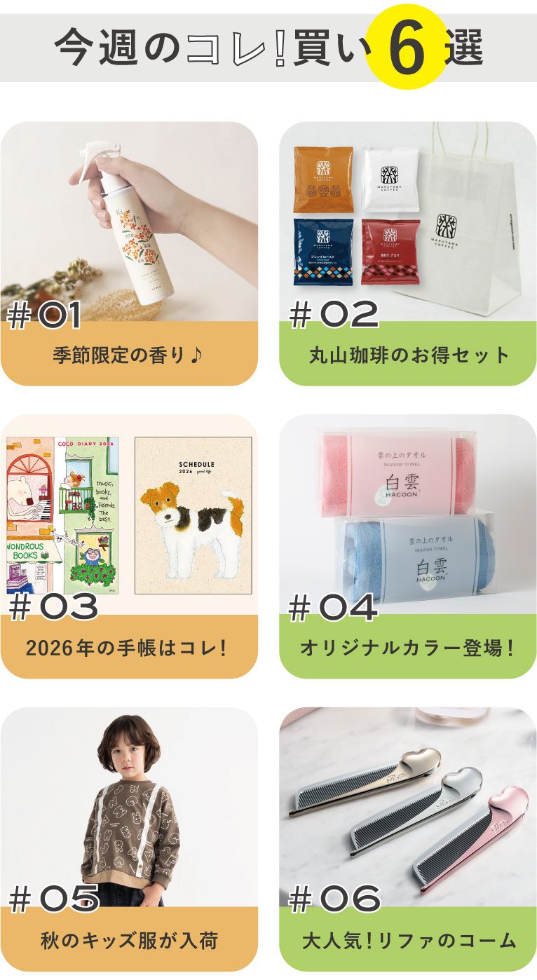 まだまだ残暑が続きそうですが、9月に入り秋を感じる新商品が続々入荷しています。心地良い香りの金木犀シリーズや大人気の「丸山珈琲のオータムバッグ」、秋のおしゃれを彩るキッズ服、そして柔らかな色合いが魅力のアミングオリジナルカラーの白雲タオルなど!