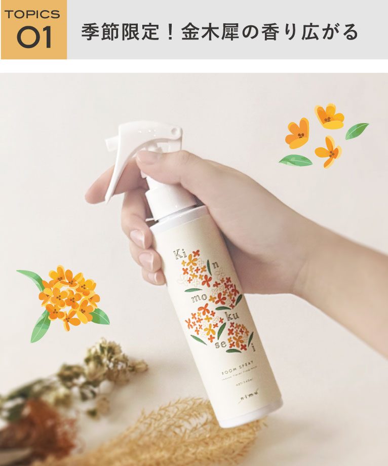 お部屋にシュッとひと吹きで、心地良い金木犀の香りがふわっと広がるルームスプレー。優しい香りに包まれて、秋の訪れを感じられ、気分も上がります♪