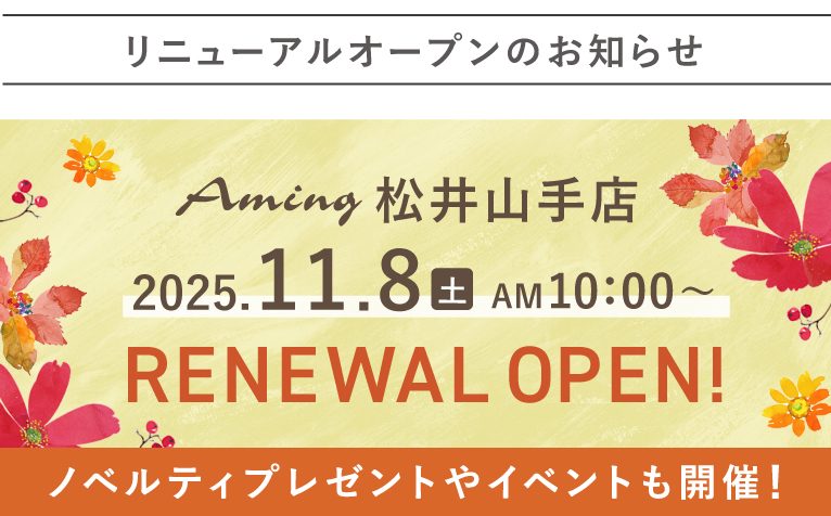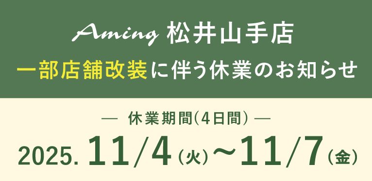 一部店舗改装に伴い、アミング松井山手店は下記の4日間お休みをいただきます。