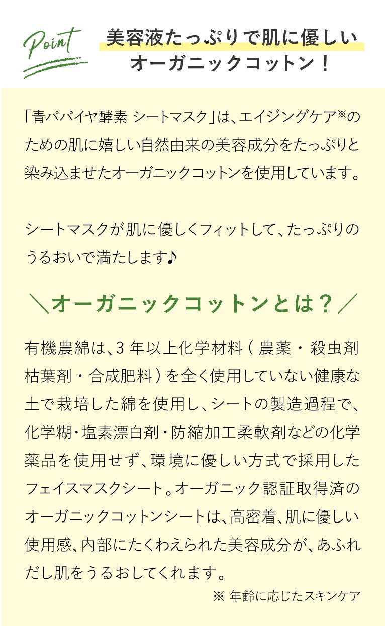 01.【シートマスク】自然由来の美容成分たっぷり!「青パパイヤ酵素 シートマスク」