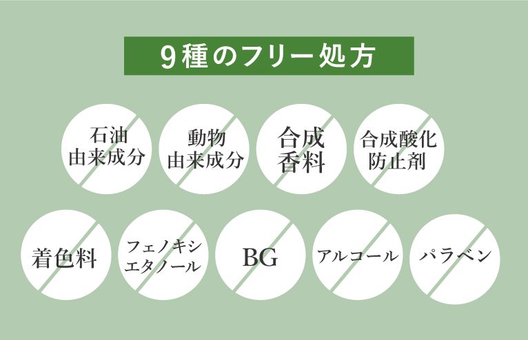 『BOTANICANON(ボタニカノン)』は全商品、合成界面活性剤、防腐剤、アルコール、合成着色料、香料、鉱物油など、全て不使用です。