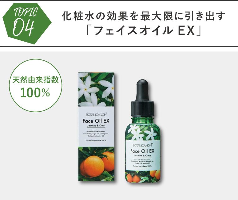 04.【フェイスオイル】化粧水の効果を最大限に引き出す「フェイスオイルEX」