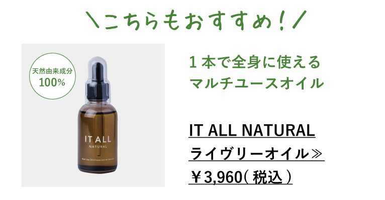 全成分は、ホホバ種子油、スクワラン、ツバキ種子油、アルガニアスピノサ核油、ワサビノキ種子油、タンカン果皮油、マンダリンオレンジ果皮油、ジャスミン油です。