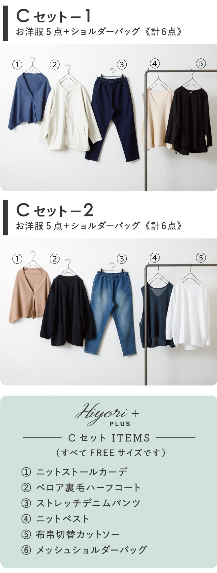 『HIYORI+(ヒヨリプラス)』からは、より上質な素材とシルエットにこだわった全2種。