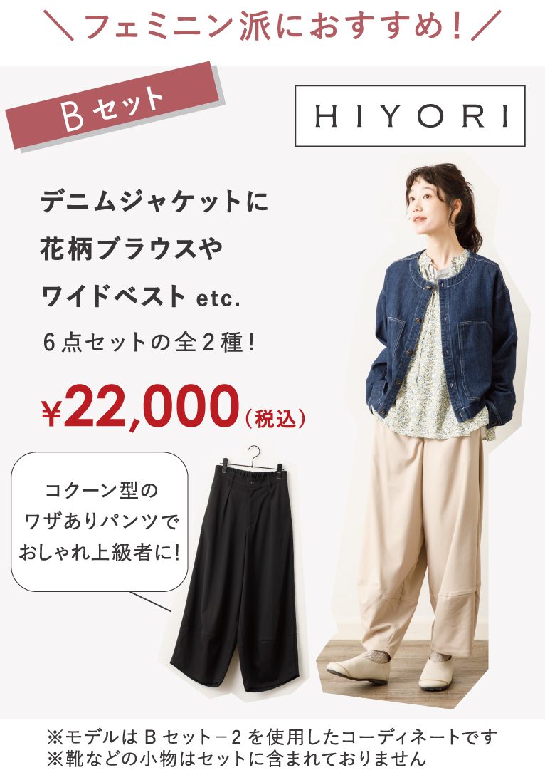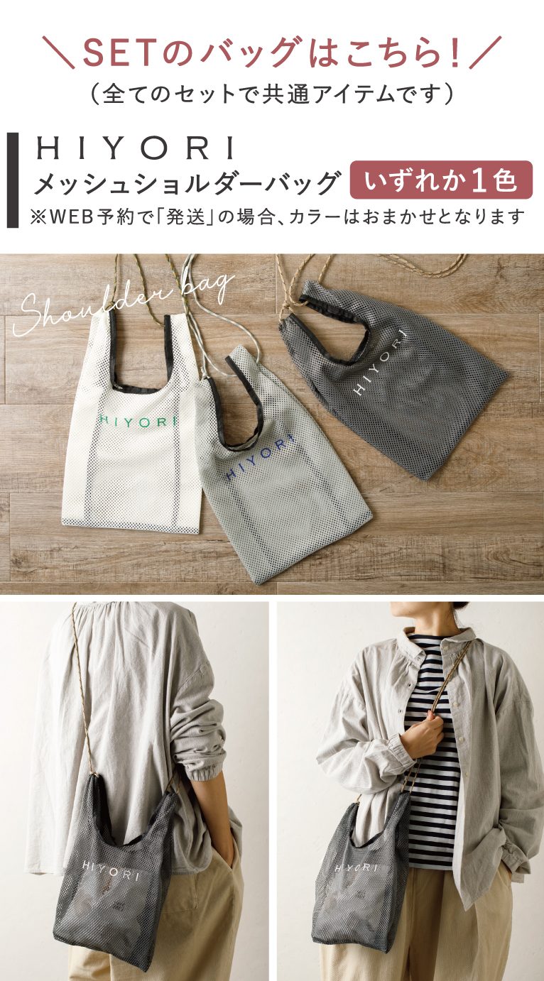 『HIYORI』からは「カジュアル派」と「フェミニン派」の、素材やデザインにこだわった各2柄全4種。