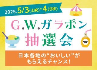 【日本各地の「おいしい」が当たるチャンス!】5/3・4はG.W.ガラポン抽選会開催!