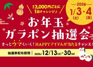 12/13(土)よりガラポン抽選券配布スタート!抽選で豪華景品が当たるチャンス!