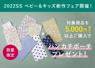 <実店舗&オンラインショップ> ベビー&キッズ春夏物新作お洋服購入フェア開催! アミングオリジナル「ハンカチポーチ」プレゼント!