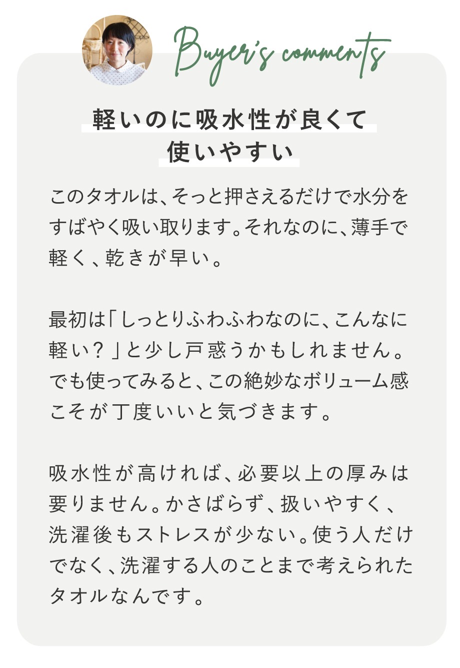 「これは良い!」と思わせてくれるタオルに出会うと、暮らしの中の小さな満足度が上がりますよ♪