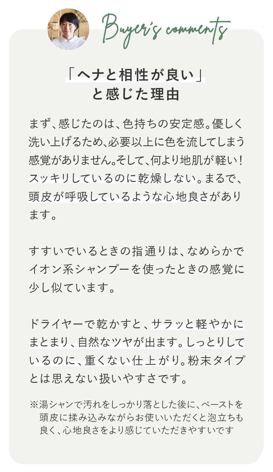 ヘナ染めやカラーリングをされている方に、ぜひ知っていただきたいナチュラルケアアイテムです。