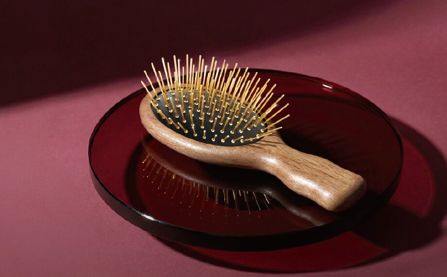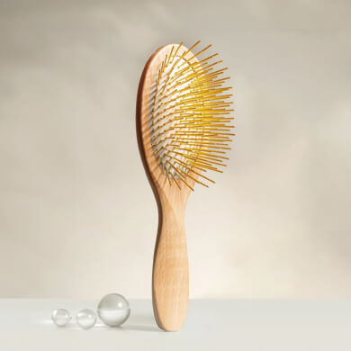 24Kゴールドと天然木(アメリカンウォルナット)を組み合わせた設計で、気になる静電気を優しく抑えます。
