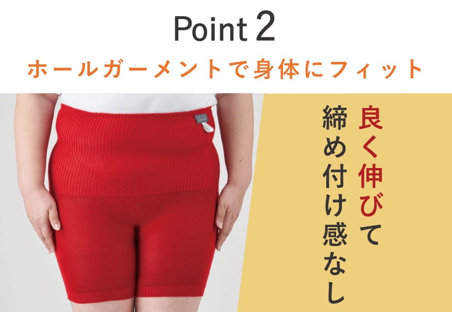 ホールガーメントの技術で編み立てているため、内側の股部分や骨盤部分で糸を少し残しています。糸は切らないようお願いいたします。