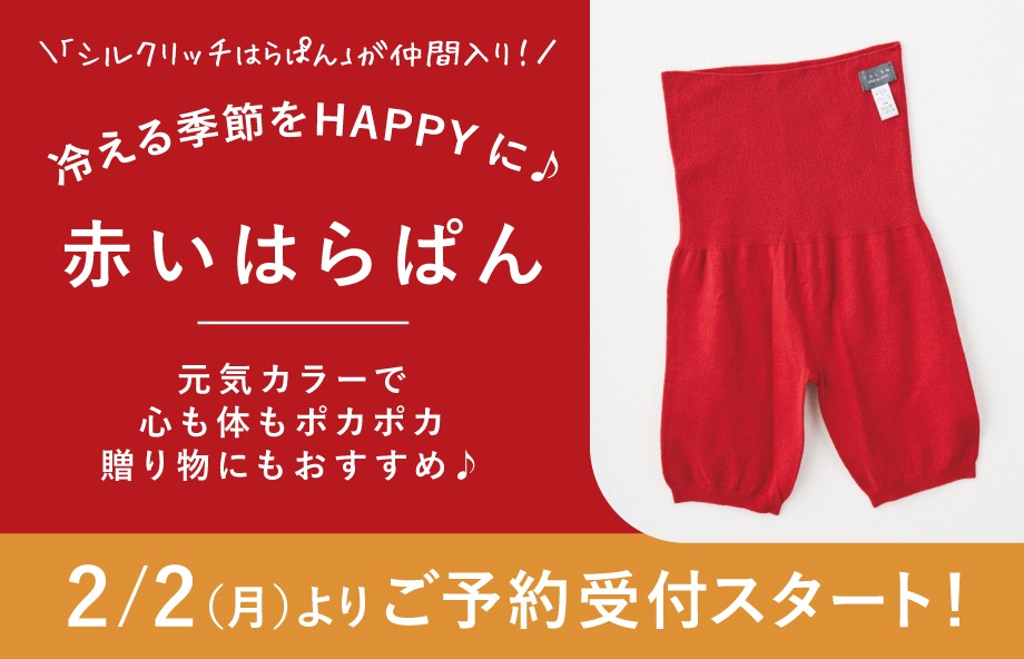 還暦のお祝いには“赤いちゃんちゃんこ”を贈る風習がありますが、体を冷えから守ってくれる「赤いはらぱん」もいいかもしれませんね!