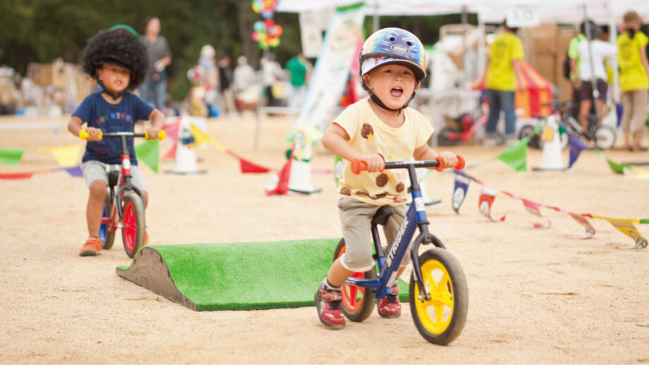 足で蹴って進む人気のストライダーを無料体験!遊びながらバランス感覚も身につきます♪