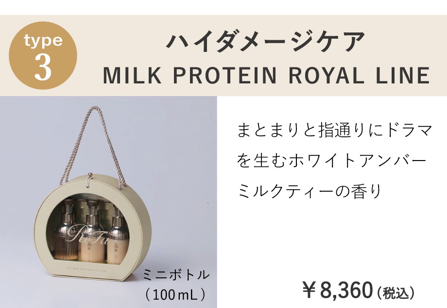 『ゴワつき・うねり・カラーの色持ち・縮れ・頭皮の乾燥』の5大ハイダメージ、そのすべてにアプローチするのが、天然ファーストミルク※4のリペア、リファミルクプロテイン ロイヤルライン。