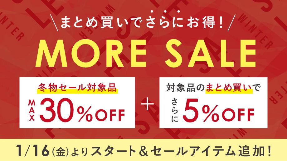 1/16(金)より、対象のセール品が【まとめ買いでさらに5%OFF】になる『MOREセール』を同時開催いたします。
