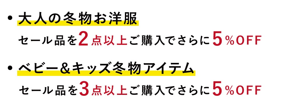 ※<大人の冬物お洋服><ベビー&キッズ冬物アイテム>を混ぜた組み合わせはMOREセールの対象外です