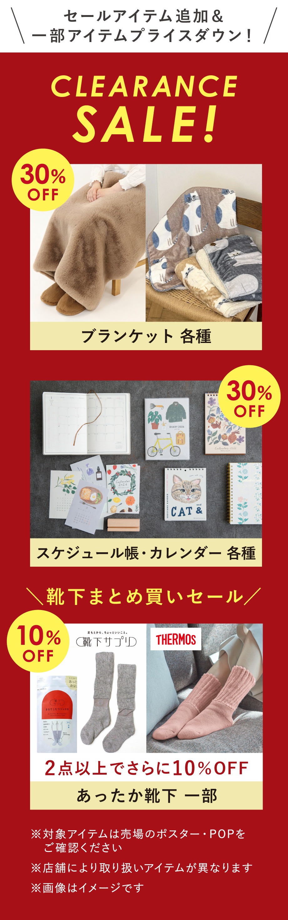 さらに、今の時期にうれしいブランケットやあったか靴下がセールアイテムに追加!