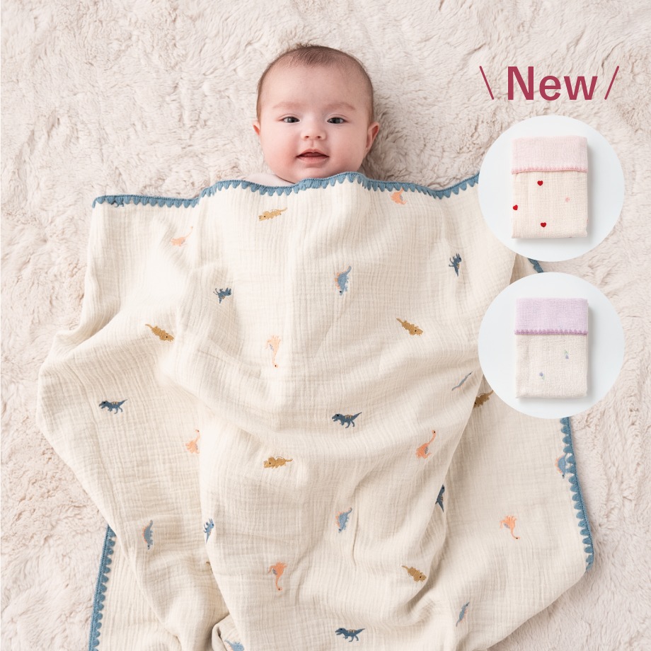 スクエアタイプだから使い道は無限大!赤ちゃんを優しく包んで「おくるみ」として、お昼寝やベビーカーなどの「ブランケット」として、お風呂のあとの「湯上がりタオル」として、ママの「ひざ掛け」にも。とにかくマルチに活躍するサイズです◎