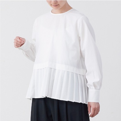 深く開いたVネックタイプで、ブラウスなどのデザインをのぞかせた着こなしが楽しめます。