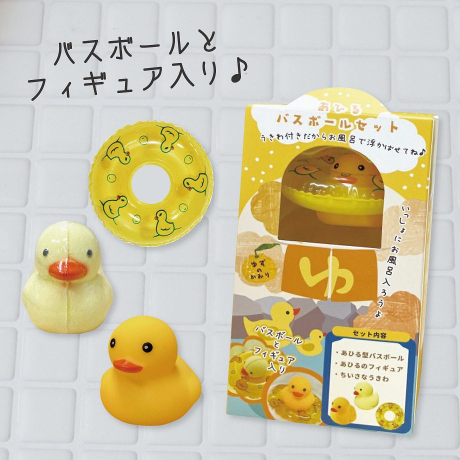 バスタイムを一層ほっこり楽しい時間にしてくれること間違いなし!あひる型のバスボールにうきわをセットして、お湯に優しく浮かべてください。