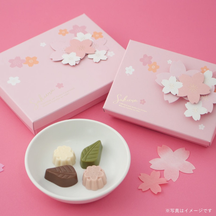 毎年このシーズンに大人気の桜をテーマにした春のチョコレートシリーズ。「結び桜」は華やかな桜模様が印象的なプレーン&ファンシーチョコの詰め合わせで、贈り物にもぴったりです。「小桜」は小粒で愛らしい桜型チョコレートを詰め合わせ、春らしい可愛さを楽しめます。「うす紅S」は優しい桜モチーフのチョコレート6個入りで、桜・抹茶・ホワイトなど多彩な風味が春のひとときを彩ります。