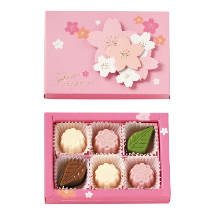 毎年このシーズンに大人気の桜をテーマにした春のチョコレートシリーズ。「結び桜」は華やかな桜模様が印象的なプレーン&ファンシーチョコの詰め合わせで、贈り物にもぴったりです。「小桜」は小粒で愛らしい桜型チョコレートを詰め合わせ、春らしい可愛さを楽しめます。「うす紅S」は優しい桜モチーフのチョコレート6個入りで、桜・抹茶・ホワイトなど多彩な風味が春のひとときを彩ります。