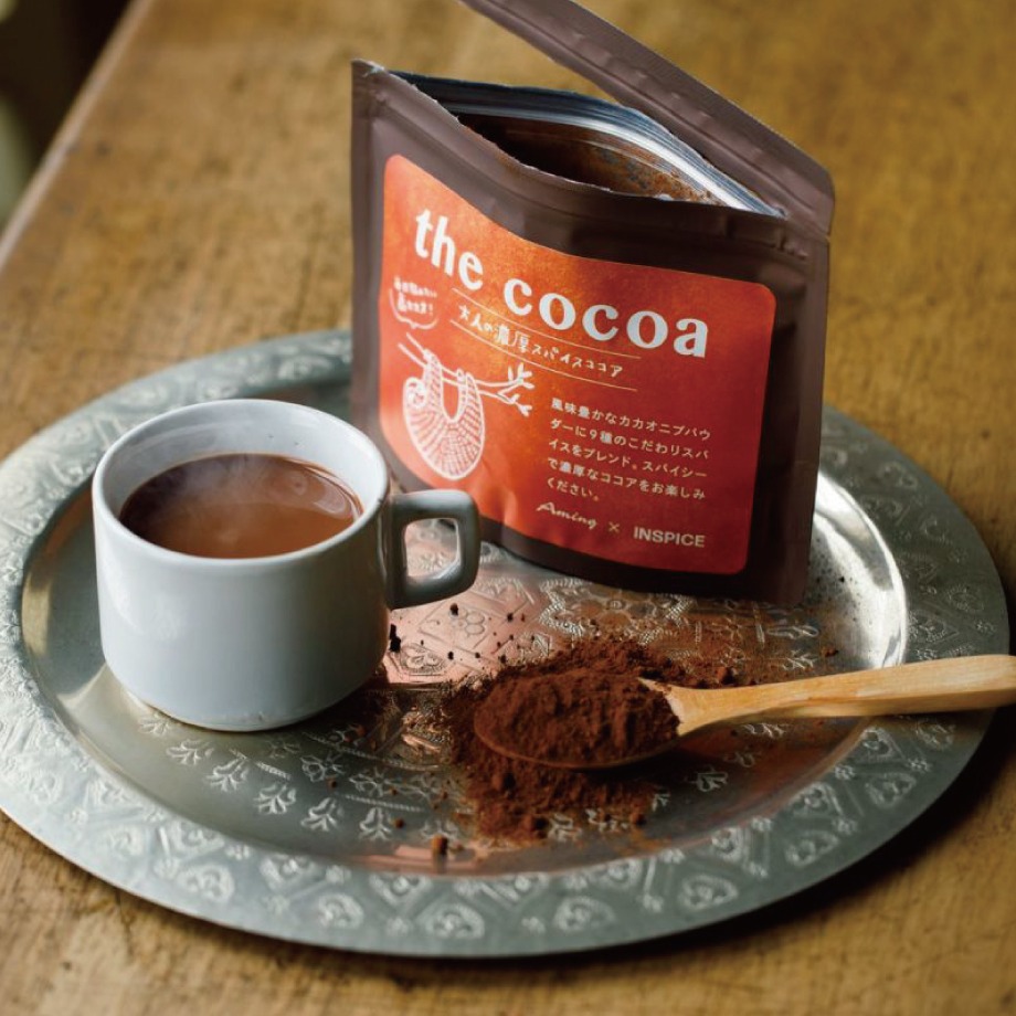 「INSPICE the cocoa」は、厳選された高カカオのピュアココアと9種のスパイス、岩塩をブレンドした大人向けの濃厚ココアドリンク。