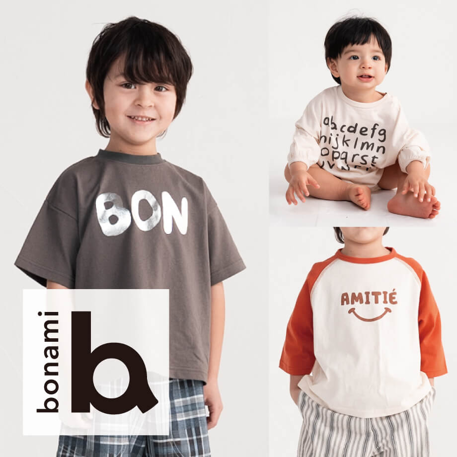フランス語で「bon(良い)」+「ami(友だち)」=『bonami(良き友だち)』をコンセプトにしたデイリーウェアとしていつも一緒に過ごしたくなる親しみやすくかわいいデザインが中心のアミングオリジナルのキッズ服ブランドがこの春デビュー!