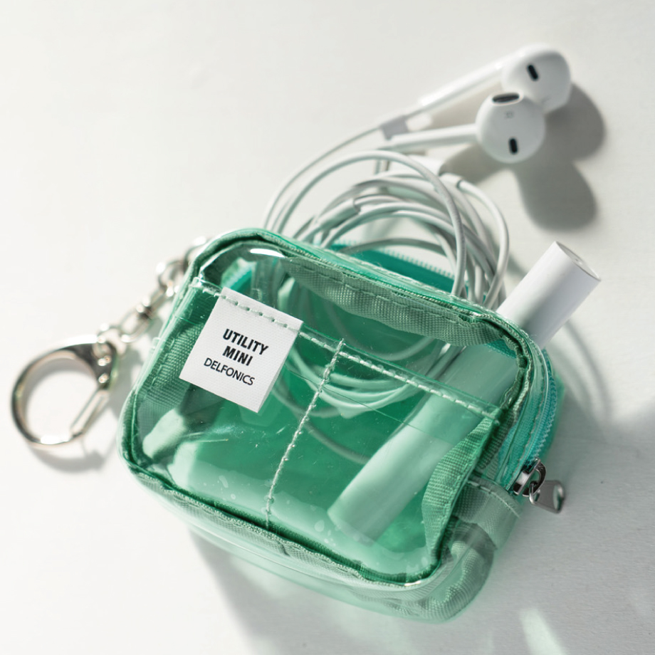 クリアタイプと布生地タイプの2種類のキーホルダーポーチ。用途や雰囲気に合わせて選べる小物入れです♪クリアタイプは中身が見えるので、リップやアクセサリーの整理に便利。布生地タイプはやわらかな素材感で、普段使いにもぴったり。コンパクトでバッグに付けて持ち歩きやすいのが◎